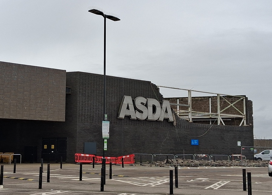 The scene of the wall collapse at ASDA Hayle on (2nd February)