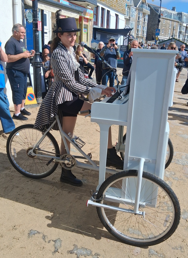 But there was big interest in Piano Bike Girl, Chloe Marie Aston. She rides a tricycle (so, technically, Piano Trike Girl) upon which her father, Lee, has mounted a piano. She can play and sing, then pedal to her next location. The gimmick aside, Chloe is an excellent musician and singer, and the crowds loved her. Good luck as she attempts to play in every seaside town around the UK.
